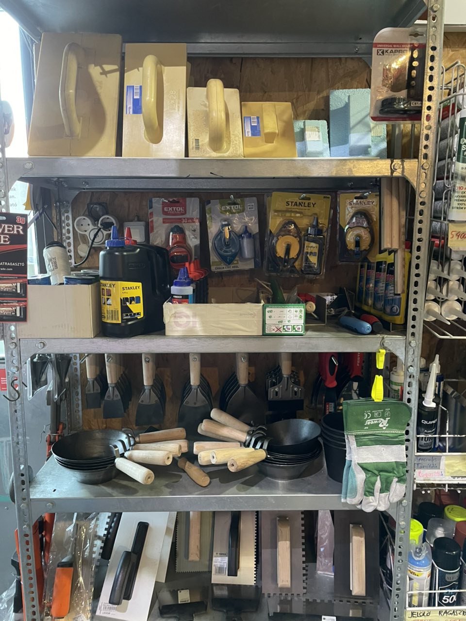 Iparos termékeink között megtalálhatóak a kőműves munka elengedhetetlen kellékei. Habarcsvödrök, kőműves kanalat, glettvasak és simítók.  Öleslécek és vízmértékek az egyenes felületek kialakításának fontos kellékei, melyek több hosszban is megtalálhatóak kínálatunkban.